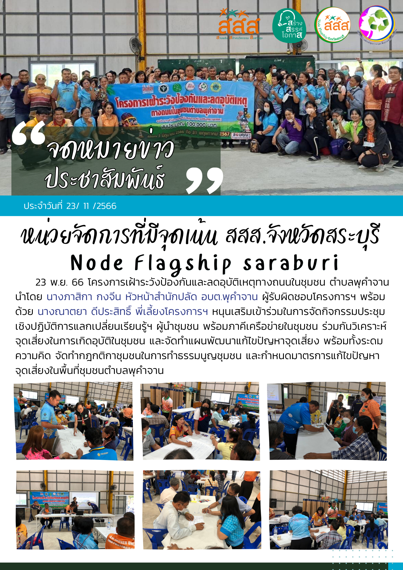 พชอ.พระพุทธบาท ร่วมกับอบต.พุคำจาน อำเภอพระพุทธบาท จังหวัดสระบุรี เขต 4 ขับเคลื่อนโครงการเฝ้าระวังป้องกันและลดอุบัติเหตุทางถนนฯ จากการสนับสนุนทุนโดย Node Flagship Saraburi