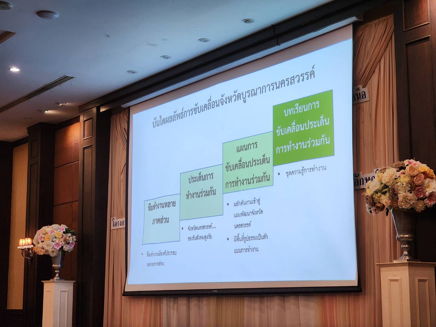 ซึ่งในช่วงเช้า เริ่มด้วยการนำเสนอรูปธรรมการขับเคลื่อนท้องถิ่นจัดการตนเอง โดย อาจารย์ไพสิฐ พานิชยกุล คณะนิติศาสตร์ มหาวิทยาลัยเชียงใหม่ คุณปลายอ้อ ทองสวัสดิ์ รักษาการประธานมูลนิธิเพื่อลมหายใจเชียงใหม่ และประสบการณ์การขับเคลื่อนงานประชาสังคมนครสวรรค์ โดย คุณวิสุทธิ์ บุญญะโสภิต