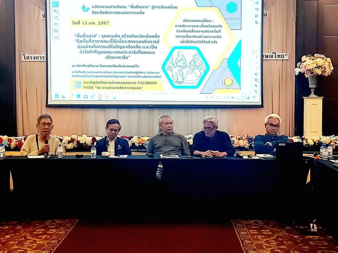 นวัตกรรมทางสังคม “พื้นที่กลาง” สู่การขับเคลื่อนจังหวัดจัดการตนเอง ภาคเหนือ13 พฤษภาคม 2567