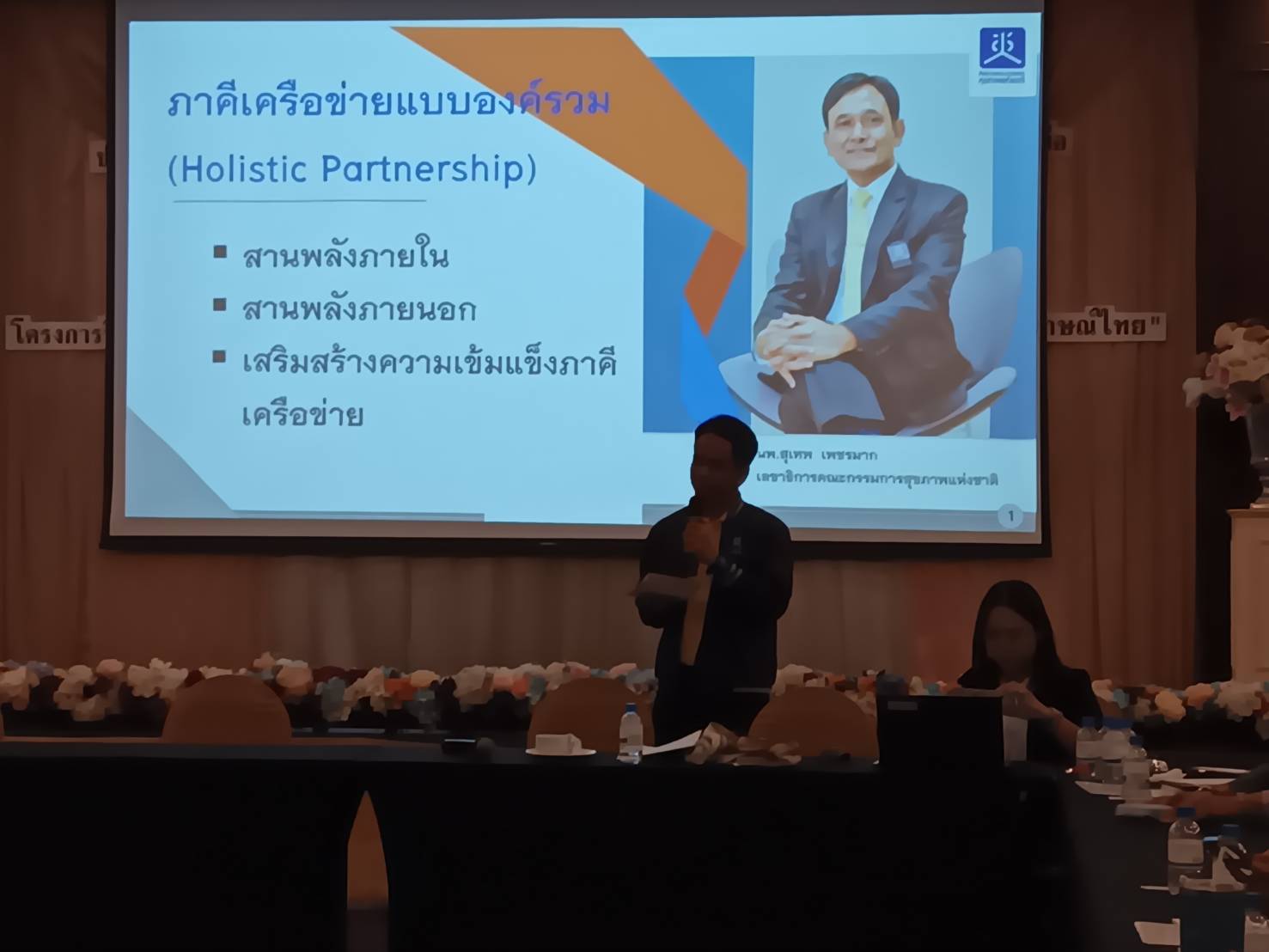 โดยในช่วงท้ายก่อนปิดการประชุม ผู้แทนองค์กรภาคีกรหนุนเสริม ให้เสนอแนะ ทิศทางและแนวทางสนับสนุนการขับเคลื่อนของเครือข่ายฯ ซึ่งทางสำนักงานคณะกรรมการสุขภาพแห่งชาติ (สช.) โดย คุณจารึก ไชยรักษ์ ผู้ช่วยเลขาธิการคณะกรรมการสุขภาพแห่งชาติ ได้ให้ความเห็นร่วมกับ คุณกรองศักดิ์ บุญรักษา สำนักงานกองทุนสนับสนุนการสร้างเสริมสุขภาพแห่งชาติ (สสส.) นายวิเชียร พลสยม ผช.ผู้อำนวยการ สถาบันพัฒนาองค์กรชุมชน (องค์การมหาชน) ภาคเหนือและคุณชูศักดิ์ ปัญญามูล สำนักส่งเสริมการเมืองภาคพลเมือง สถาบันพระปกเกล้า