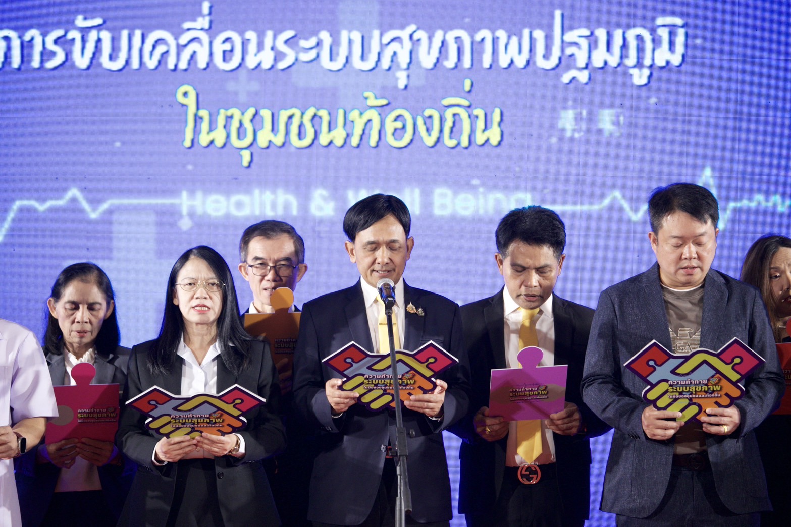เมื่อวันที่ 19 ก.ค. 2567 สำนักงานคณะกรรมการสุขภาพแห่งชาติ (สช.) สถาบันวิจัยระบบสาธารณสุข (สวรส.) และ สมาคมองค์การบริหารส่วนจังหวัดแห่งประเทศไทย สานพลังจัดเวทีสาธารณะ “จากปฏิบัติการพื้นที่ สู่ข้อเสนอเชิงนโยบาย : ความท้าทายระบบสุขภาพในมือของชุมชนและท้องถิ่น” เพื่อนำเสนอนวัตกรรมและผลการศึกษาวิจัยที่เกี่ยวข้องกับระบบสุขภาพปฐมภูมิโดยชุมชนและท้องถิ่น ตลอดจนระดมความคิดเห็น แลกเปลี่ยน และร่วมขับเคลื่อนข้อเสนอเชิงนโยบาย พร้อมทั้งประกาศเจตนารมณ์ความร่วมมือการขับเคลื่อนระบบสุขภาพปฐมภูมิในชุมชนท้องถิ่น โดยองค์กรภาคีเครือข่ายทั้งภาครัฐ ภาควิชาการ ภาคประชาสังคม กว่า 30 หน่วยงาน ท่ามกลางผู้เข้าร่วมงาน ทั้งในสถานที่ประชุม (on site) และผ่านระบบอิเล็กทรอนิกส์ (online) รวมกว่า 1,500 คน เป็นสักขีพยาน