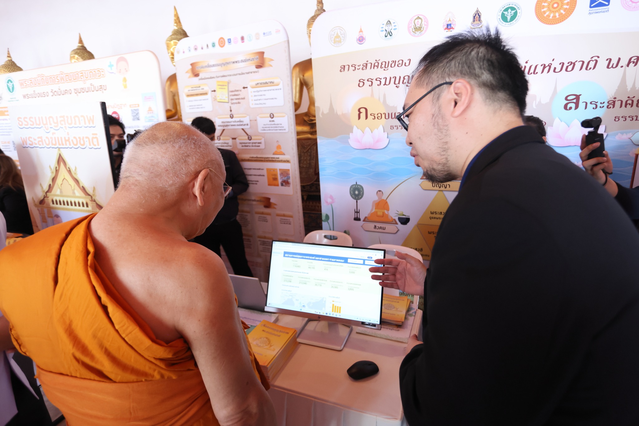 ในงานนี้สำนักนโยบายสาธารณะภาคเหนือ สำนักงานคณะกรรมการสุขภาพแห่งชาติ โดยนายณรงค์ กฤติขจรกรกุล และนายทรงพล ตุละทา ได้นำเสนอระบบข้อมูลรายงานสถานการณ์สุขภาพพระสงฆ์เพื่อสนับสนุนการติดตามและประเมินผลการดำเนินงานตามธรรมนูญสุขภาพพระสงฆ์แห่งชาติ แด่สมเด็จพระมหาธีราจารย์ ที่บูธนิทรรศการธรรมนูญสุขภาพพระสงฆ์แห่งชาติด้วย โดยสมเด็จฯ มีดำริว่าคู่มือ ธรรมนูญสุขภาพพระสงฆ์แห่งชาติและรายงานสถานะสุขภาพพระสงฆ์สามเณรนี้ สามารถเป็นประโยชน์แก่คณะสงฆ์และสาธารณชน เห็นควร เผยแพร่ ให้ทราบโดยทั่วกัน