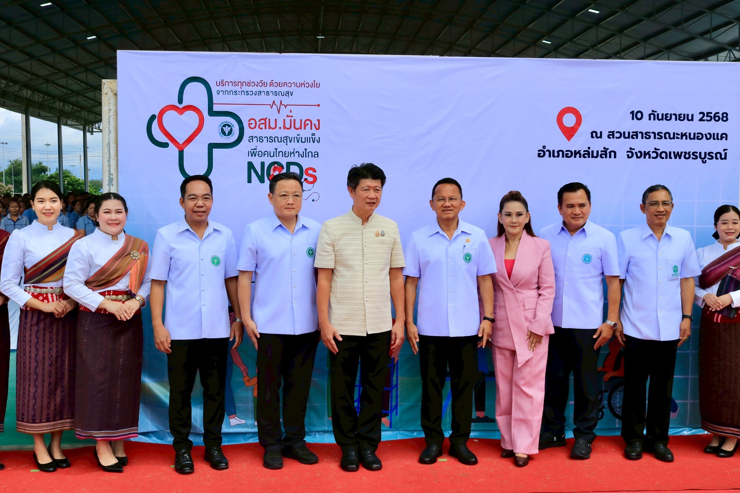 วันที่ 10 กันยายน 2568 ณ สวนสาธารณะหนองแค อำเภอหล่มสัก จังหวัดเพชรบูรณ์ นายสมศักดิ์ เทพสุทิน รัฐมนตรีว่าการกระทรวงสาธารณสุข เป็นประธานเปิดโครงการ “บริการทุกช่วงวัย ด้วยความห่วงใย จากกระทรวงสาธารณสุข” ภายใต้หลักการ “อสม.มั่นคง สาธารณสุขเข้มแข็ง เพื่อคนไทยห่างไกล NCDs” โดยมีนายกกชัย ฉายรัศมีกุล รองผู้ว่าราชการจังหวัดเพชรบูรณ์ ให้การต้อนรับ พร้อมด้วย นพ.สุภโชค เวชภัณฑ์เภสัช ผู้ตรวจราชการกระทรวงสาธารณสุข เขตสุขภาพที่ 2 ผู้บริหารหน่วยงานสาธารณสุข หัวหน้าส่วนราชการ และอาสาสมัครสาธารณสุขประจำหมู่บ้าน (อสม.) เข้าร่วมกว่า 1,900 คน