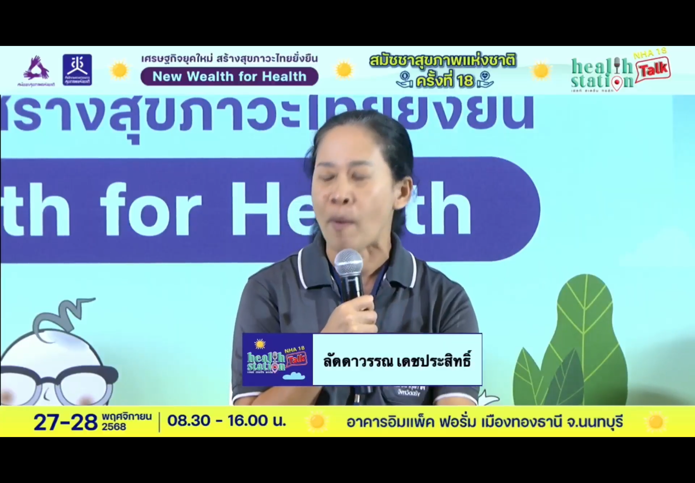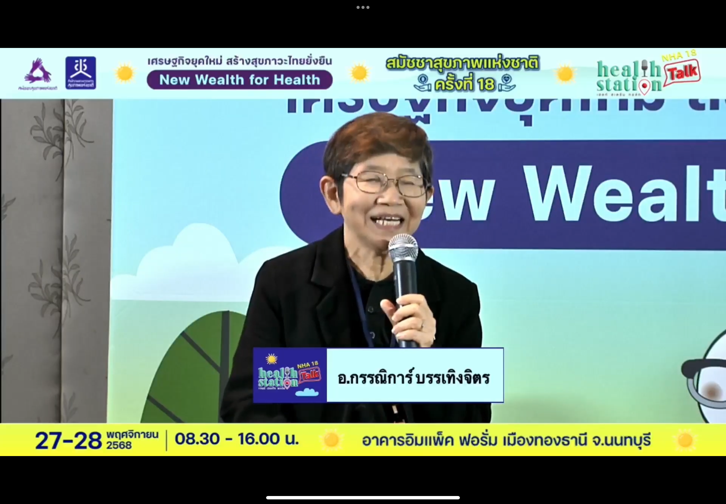 อ.กรรณิการ์ บรรเทิงจิตร ผู้จัดการสำนักประสานนโยบายรองรับสังคมสูงวัย กล่าวบนเวที “Health Station Talk” ว่า ประเทศไทยเข้าสู่สังคมสูงวัยอย่างรวดเร็ว หากไม่เร่งวางรากฐานตั้งแต่ เด็ก เยาวชน วัยแรงงาน ไปจนถึงผู้สูงอายุ จะเกิดภาระทางสังคม เศรษฐกิจ และระบบดูแลระยะยาวที่หนักขึ้น พร้อมระบุว่า “การเตรียมพร้อมไม่ใช่เรื่องของผู้สูงอายุเท่านั้น แต่เป็นเรื่องของทุกวัย หากเริ่มเตรียมเมื่ออายุถึง 60 ปีจะช้าเกินไป จึงต้องสร้างแผนและระบบรองรับตั้งแต่วันนี้
