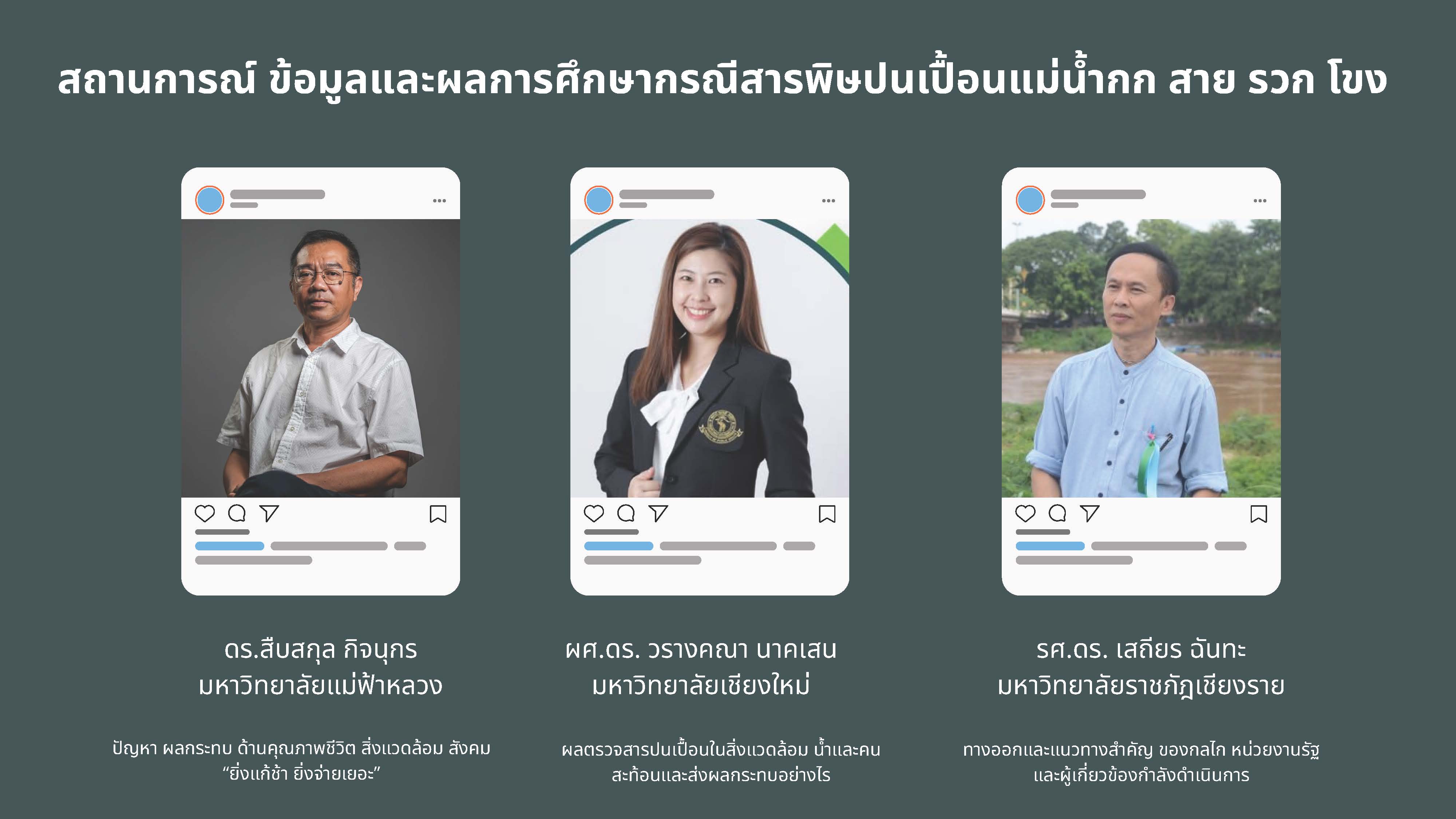 - ผลการวิเคราะห์สารปนเปื้อนทางวิทยาศาสตร์ โดย รศ.ดร.วรางคณา นาคเสน มหาวิทยาลัยเชียงใหม่