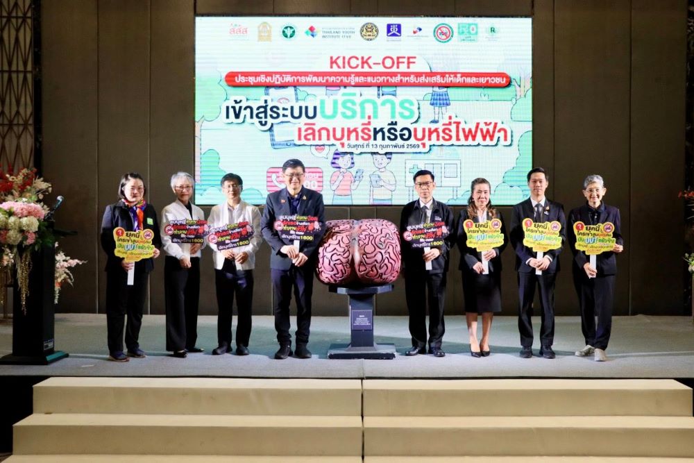 สถาบันยุวทัศน์แห่งประเทศไทยจัดงานประชุมพิธีเปิด Kick off ระบบช่วยเด็กเลิกบุหรี่/บุหรี่ไฟฟ้า ปกป้องสมองเด็ก และเยาวชน ผนึกกำลัง ร่วมกับ สสส. และ กขป. เขต 6 สานพลังพัฒนานวัตกรรมคัดกรอง-ส่งต่อ ช่วยเด็กและเยาวชน 2,000 คน ใน 60 สถานศึกษา ภาคตะวันออก หลังพบเยาวชนไทยสูบบุหรี่ไฟฟ้าเพิ่ม 11.44 เท่า วัย 15–29 ปี ใช้สูงสุด