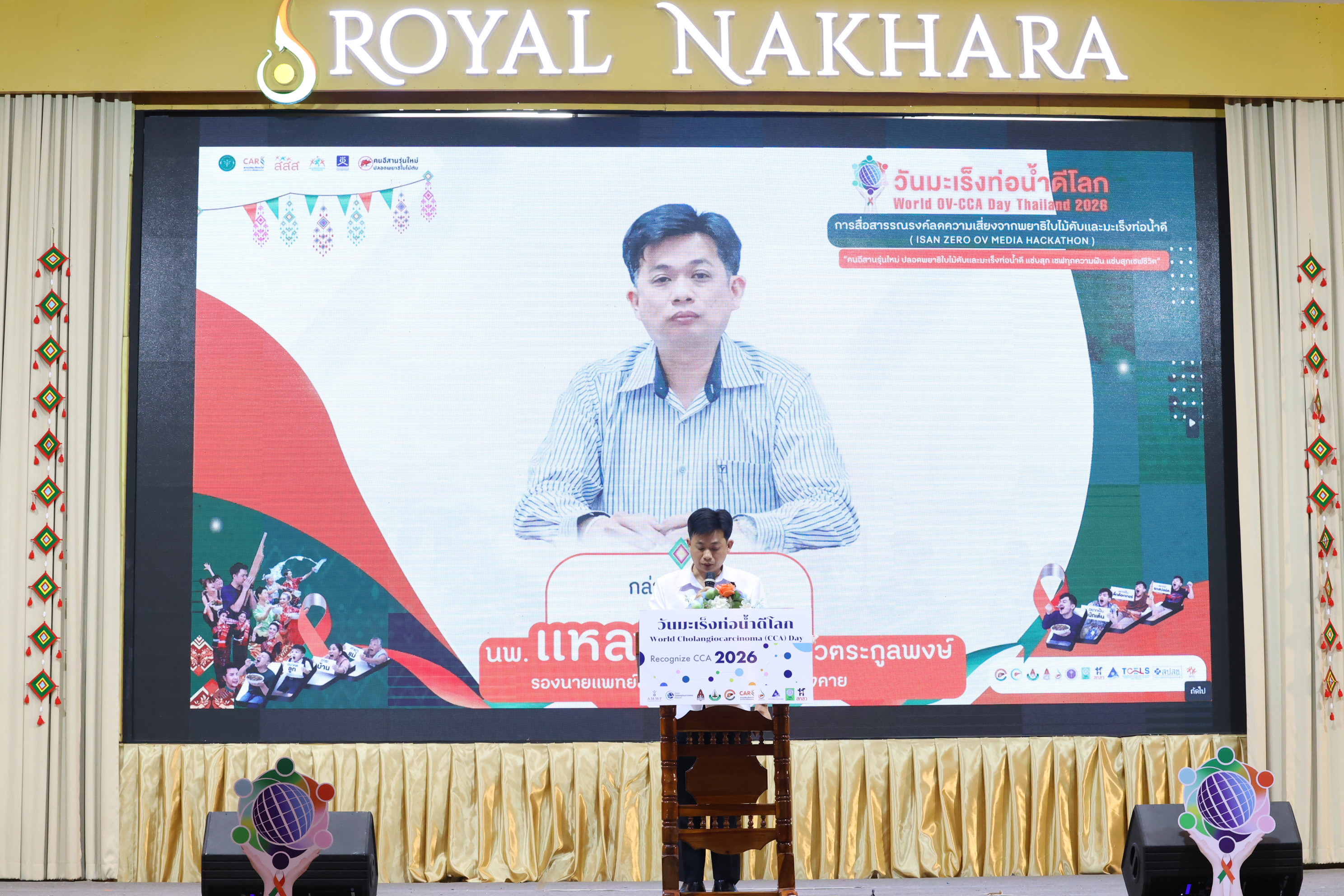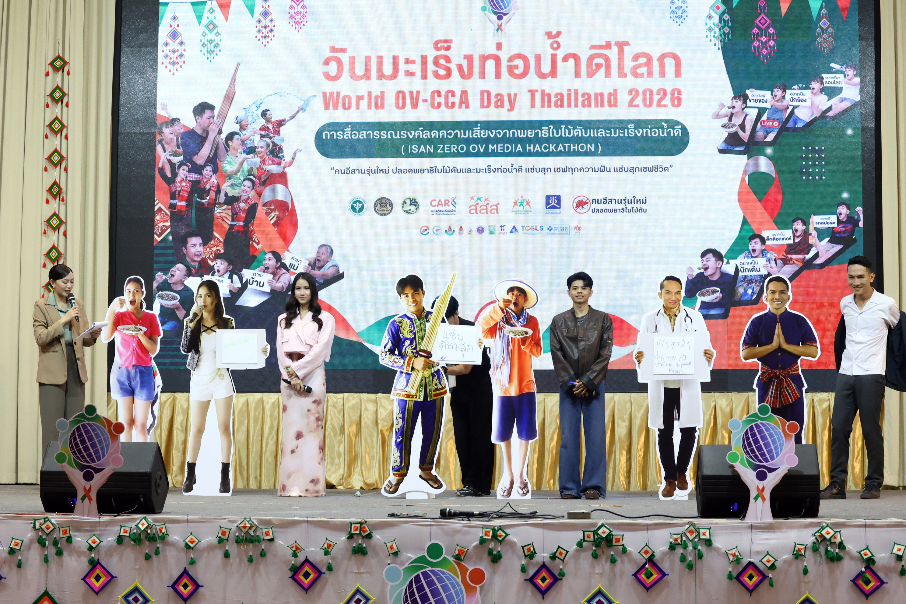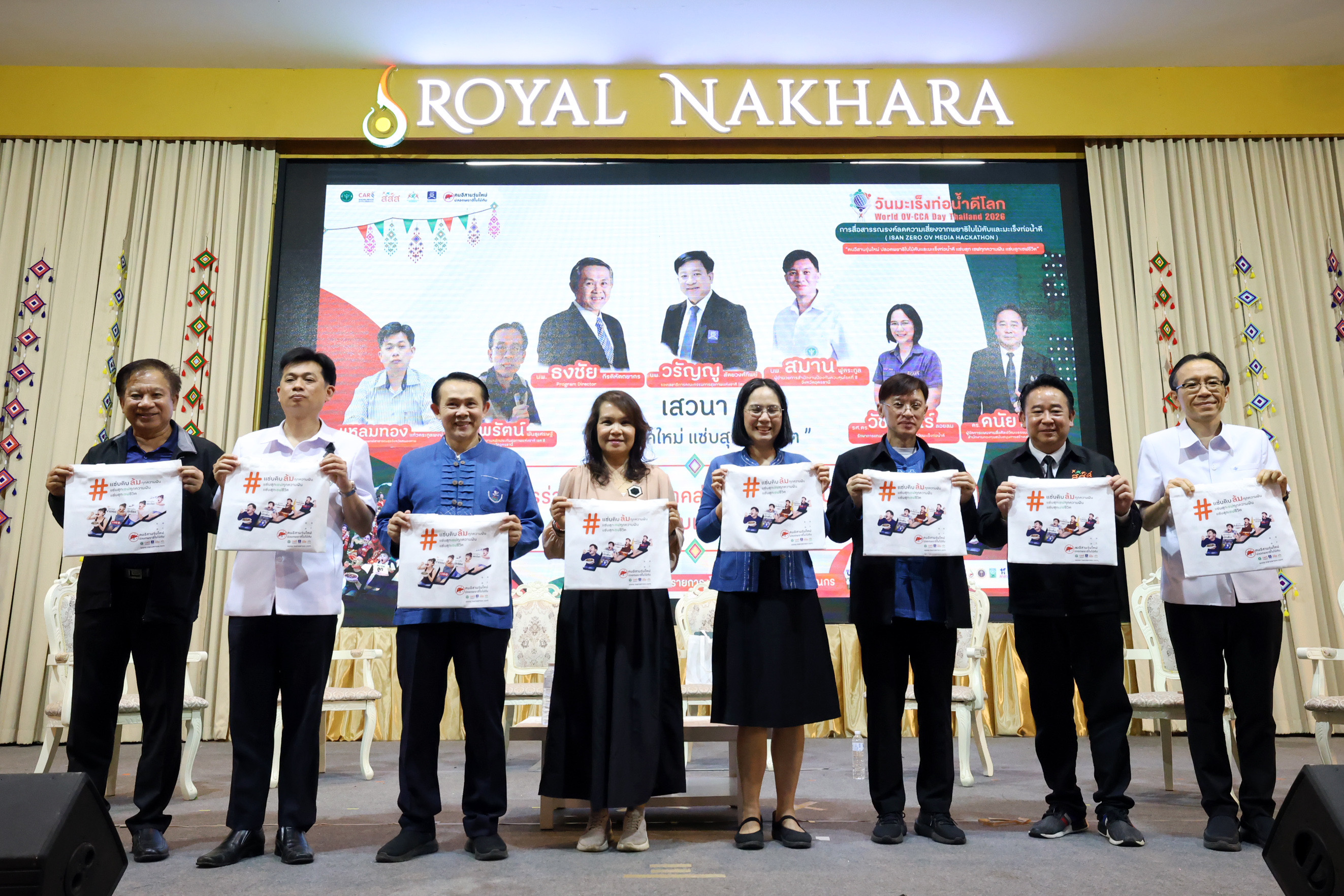 เมื่อวันที่ 27 กุมภาพันธ์ 2569 ที่โรงแรมรอยัลนาคารา อ.เมือง จ.หนองคาย ได้มีการจัดงาน “มหกรรมวันมะเร็งท่อน้ำดีโลก (World OV CCA Day) และการประกวดนวัตกรรมการสื่อสารรณรงค์ “คนอีสานรุ่นใหม่ ปลอดพยาธิใบไม้ตับและมะเร็งท่อน้ำดี” - ISAN ZERO OV HACKATHON โดยมีประชาชน นักเรียน นักศึกษาและบุคลากรของกระทรวงสาธารณสุขมาร่วมงานกว่า 300 คน