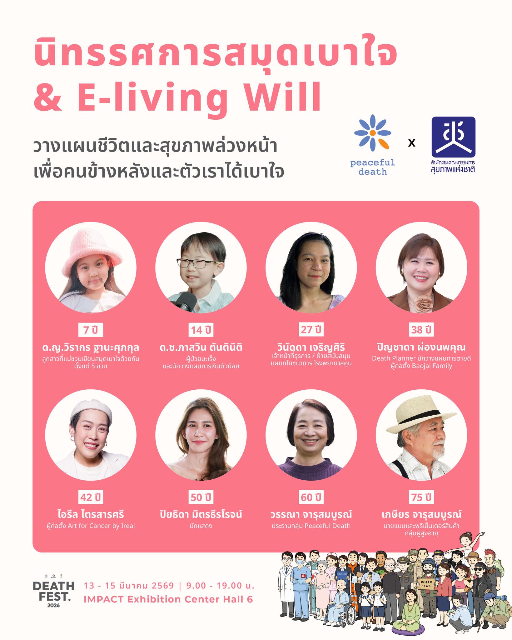 อีกทั้งพบกับเหล่าคนดังที่จะมาร่วมถ่ายทอดความรู้ที่จะนำไปสู่การวางแผนในระยะท้ายของชีวิต อาทิ รศ.นพ. ฉันชาย สิทธิพันธุ์ คณะแพทยศาสตร์ จุฬาลงกรณ์มหาวิทยาลัย และอีกหลายท่าน