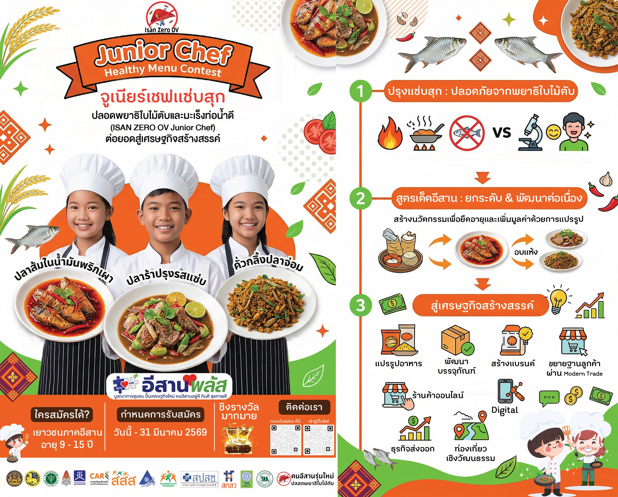 ISAN ZERO OV ชวนเยาวชนภาคอีสาน อายุ 9 - 15 ปี ร่วมรังสรรค์เมนูแซ่บสุก จากวัตถุดิบปลาร้าปลุกสุกรสแซ่บ หรือปลาส้ม” เพื่อให้ปลอดพยาธิใบไม้ตับและมะเร็งท่อน้ำดี และต่อยอดสู่เศรษฐกิจสร้างสรรค์