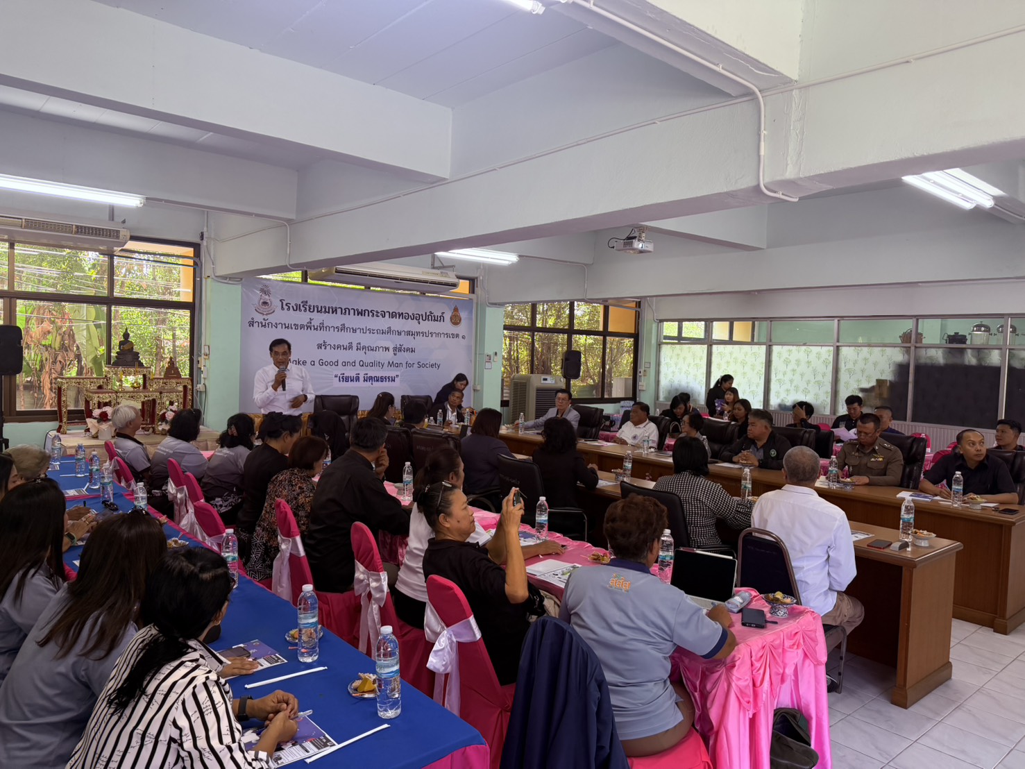 คุณฐปพร เกษกำจร สช. ได้กล่าวขี้แจงวัตถุประสงค์เพื่อสร้างความเข้าใจร่วมกันเกี่ยวกับมาตรการ ทิศทาง และกลไก ในการขับเคลื่อนการจัดการโรคติดต่อไม่เรื้อรัง (NCDs) ระดับพื้นที่ ซึ่งวันนี้เป็นจุดเริ่มต้นของความร่วมมือที่เข้มแข็งในการรวมพลัง สร้างสุขภาพดี ลดโรค NCDs อย่างยั่งยืนเพื่อเปลี่ยนความร่วมมือแบบสมัครใจให้เป็น "พันธสัญญาเชิงนโยบาย" ของคนในจังหวัดสมุทรปราการ