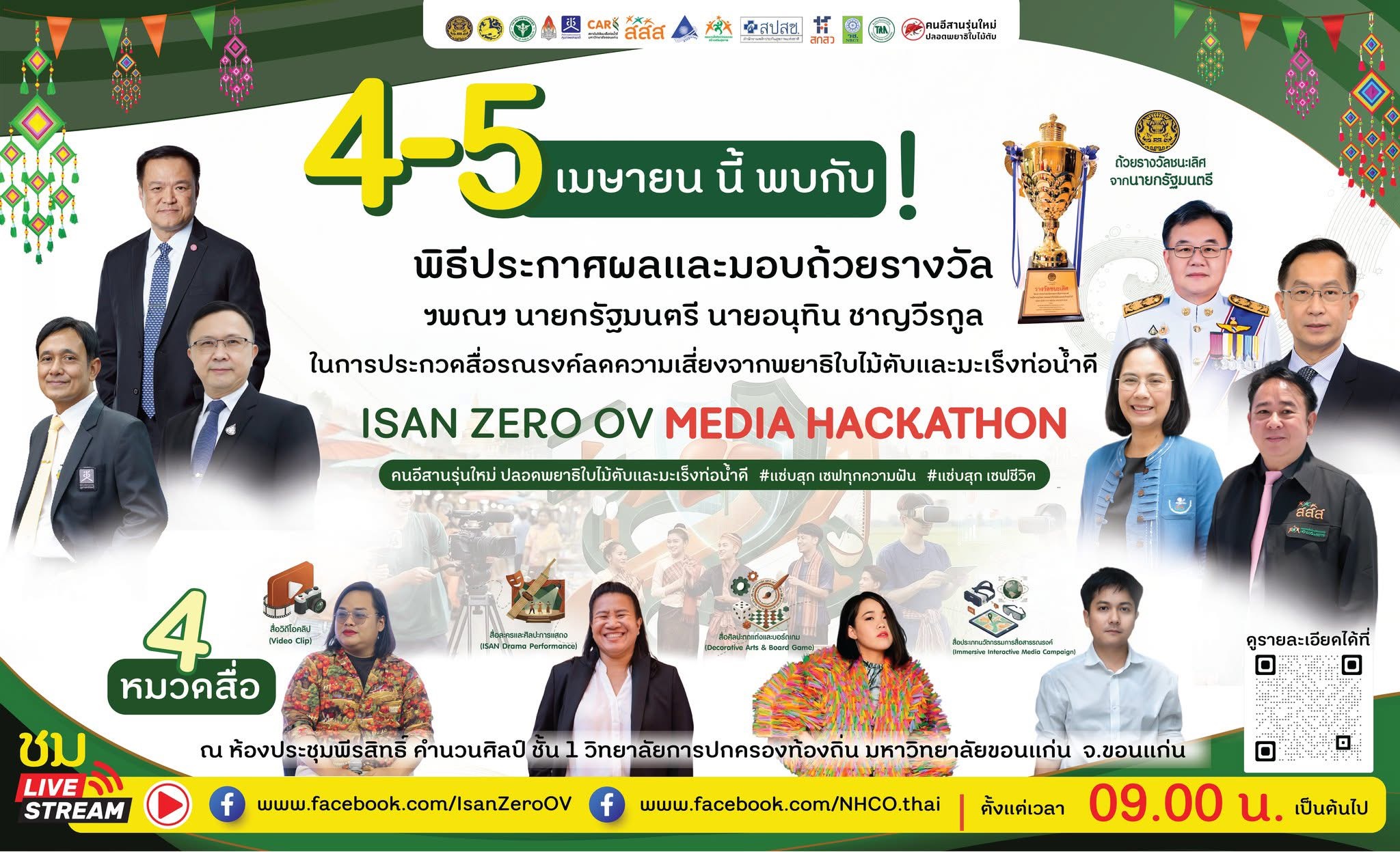พิธีประกาศผลและมอบถ้วยรางวัล ในการประกวดนวัตกรรมการสื่อสารรณรงค์ “คนอีสานรุ่นใหม่ ปลอดพยาธิใบไม้ตับและมะเร็งท่อน้ำดี (ISAN Zero OV Media Hackathon)
