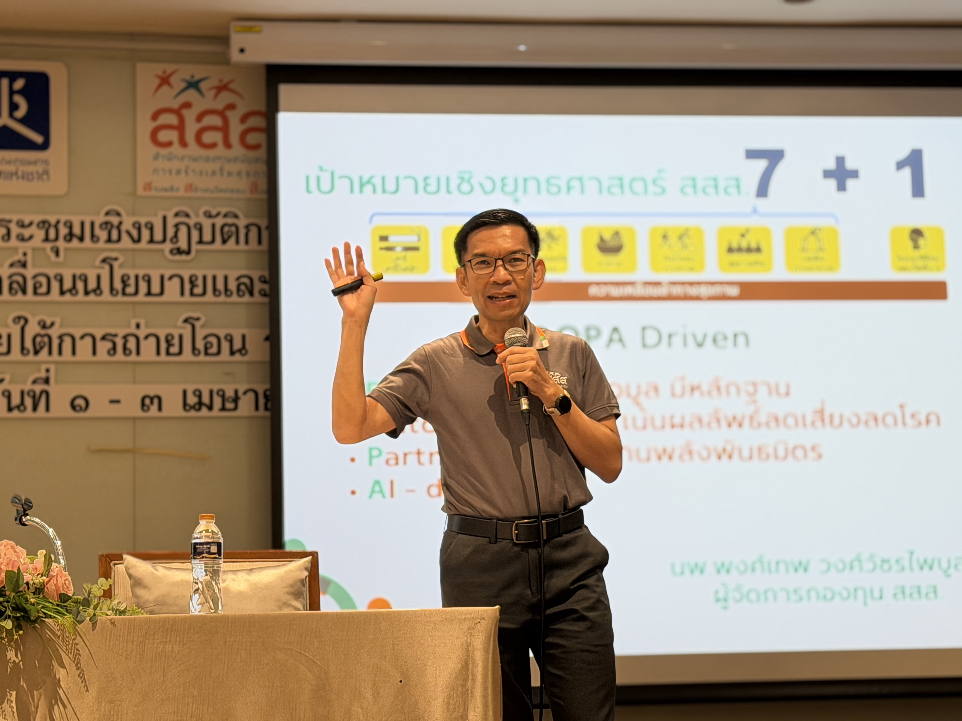 นอกจากนี้ ยังมีการบรรยายพิเศษโดย นพ.เฉวตสรร นามวาท ผู้อำนวยการสำนักสนับสนุนการพัฒนาระบบสุขภาพ (สำนัก 7) ในหัวข้อ “การใช้ข้อมูลและ AI เพื่อสนับสนุนการตัดสินใจเชิงนโยบายด้านสุขภาพ” โดยนำเสนอแนวคิด “DOPA Driven” ประกอบด้วย Data-driven การใช้ข้อมูลเป็นฐานในการตัดสินใจ, Outcome-driven การมุ่งผลลัพธ์เพื่อลดโรค, Partner-driven การบูรณาการความร่วมมือจากทุกภาคส่วน และ AI-driven การนำ AI มาช่วยสนับสนุนการวิเคราะห์และตัดสินใจเชิงนโยบาย