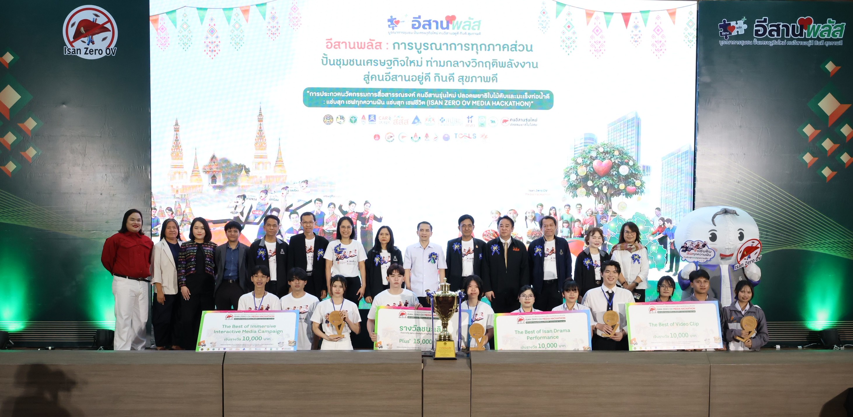 นวัตกรรมการสื่อสารรณรงค์ “คนอีสานรุ่นใหม่ ปลอดพยาธิใบไม้ตับและมะเร็งท่อน้ำดี (ISAN Zero OV Media Hackathon)” ได้สำเร็จไปเป็นที่เรียบร้อย ในวันที่ 5 เมษายน 2569 ซึ่งทีมที่ได้รางวัล Best of The Best รับถ้วยรางวัล ฯพณฯ อนุทิน ชาญวีรกูล นายกรัฐมนตรี ได้แก่ทีม เริ่ด ที่ผลิตผลงานเข้าประกวดในสื่อประเภทศิลปะตกแต่งและบอร์ดเกม พร้อมทั้งรับรางวัล The Best of Decorative Arts and Board Game พ่วงไปอีกด้วย