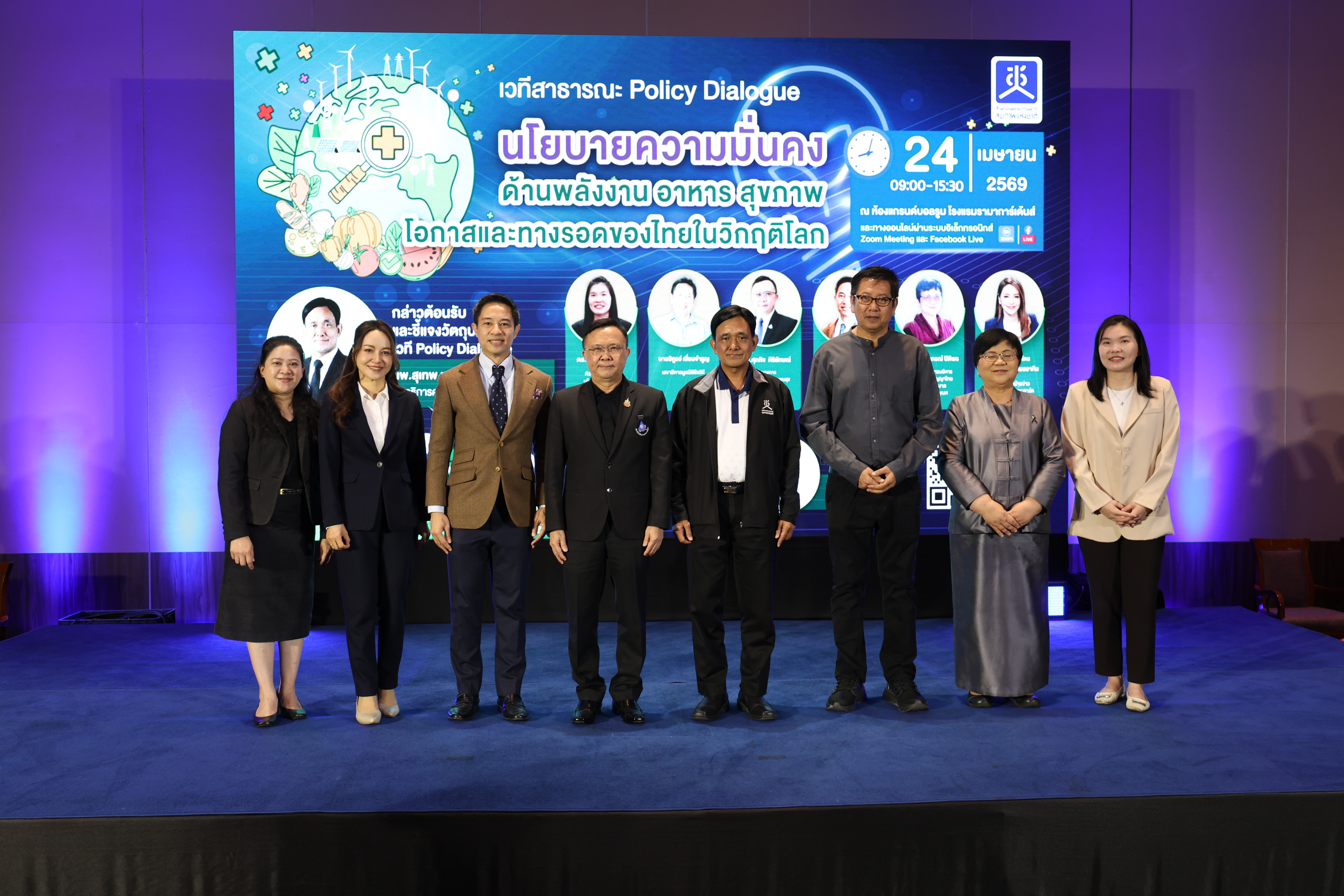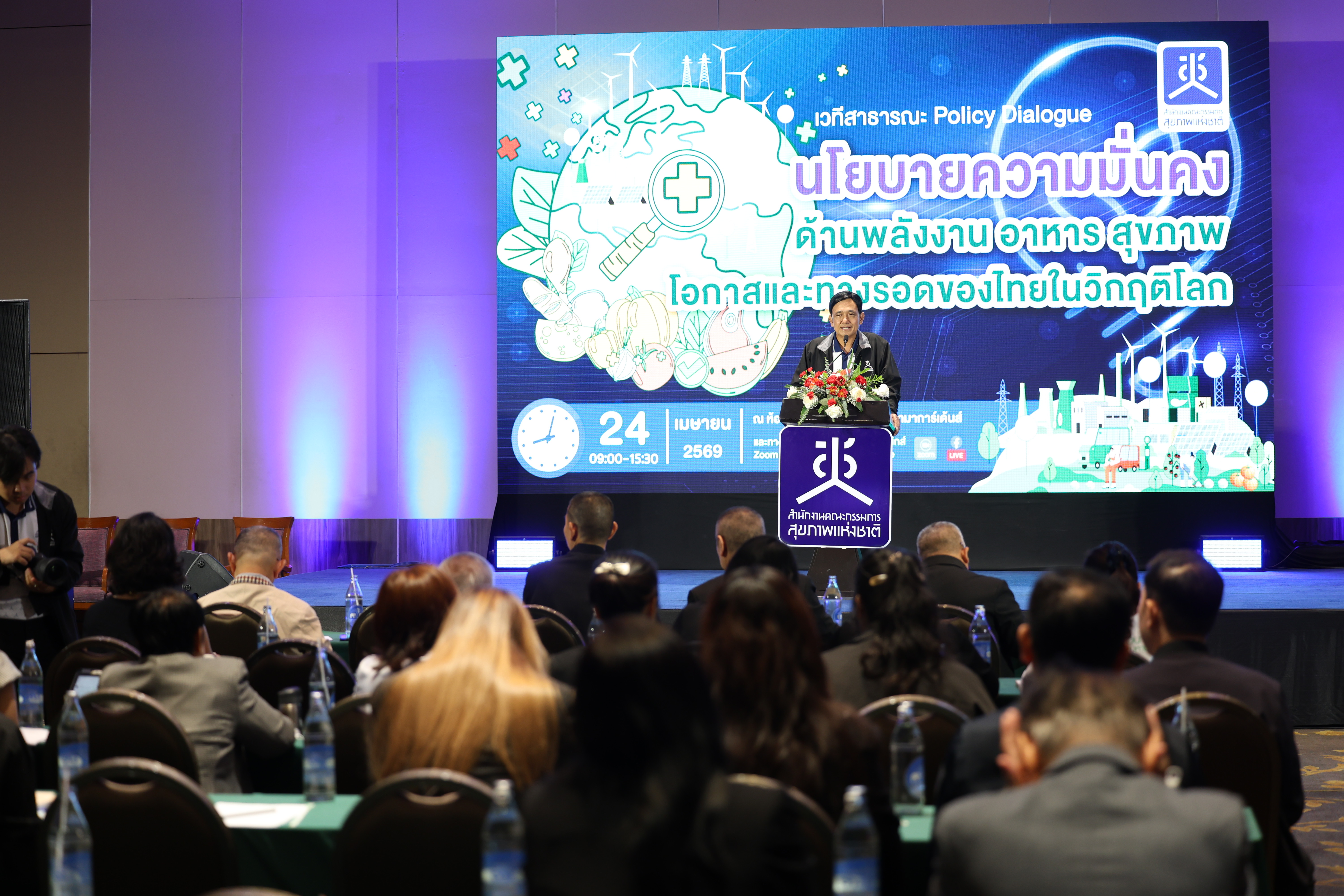 สำนักงานคณะกรรมการสุขภาพแห่งชาติ (สช.) ร่วมกับภาคีเครือข่ายจัดเวที Policy Dialogue เรื่อง “นโยบายความมั่นคงด้านพลังงาน-อาหาร-สุขภาพ: โอกาสและทางรอดของไทยในวิกฤติโลก” เมื่อวันที่ 24 เม.ย. 2569 เพื่อแลกเปลี่ยนสถานการณ์ภูมิรัฐศาสตร์ ผลกระทบ และการเตรียมความพร้อม ตลอดจนร่วมออกแบบกรอบทิศทางและแนวทางการพัฒนานโยบายสาธารณะฯ ที่คุ้มครองสิทธิสุขภาพของประชาชน ตามเจตนารมณ์ของธรรมนูญว่าด้วยระบบสุขภาพแห่งชาติ ฉบับที่ 3 พ.ศ. 2565 โดยมีผู้เข้าร่วมกว่า 100 คน