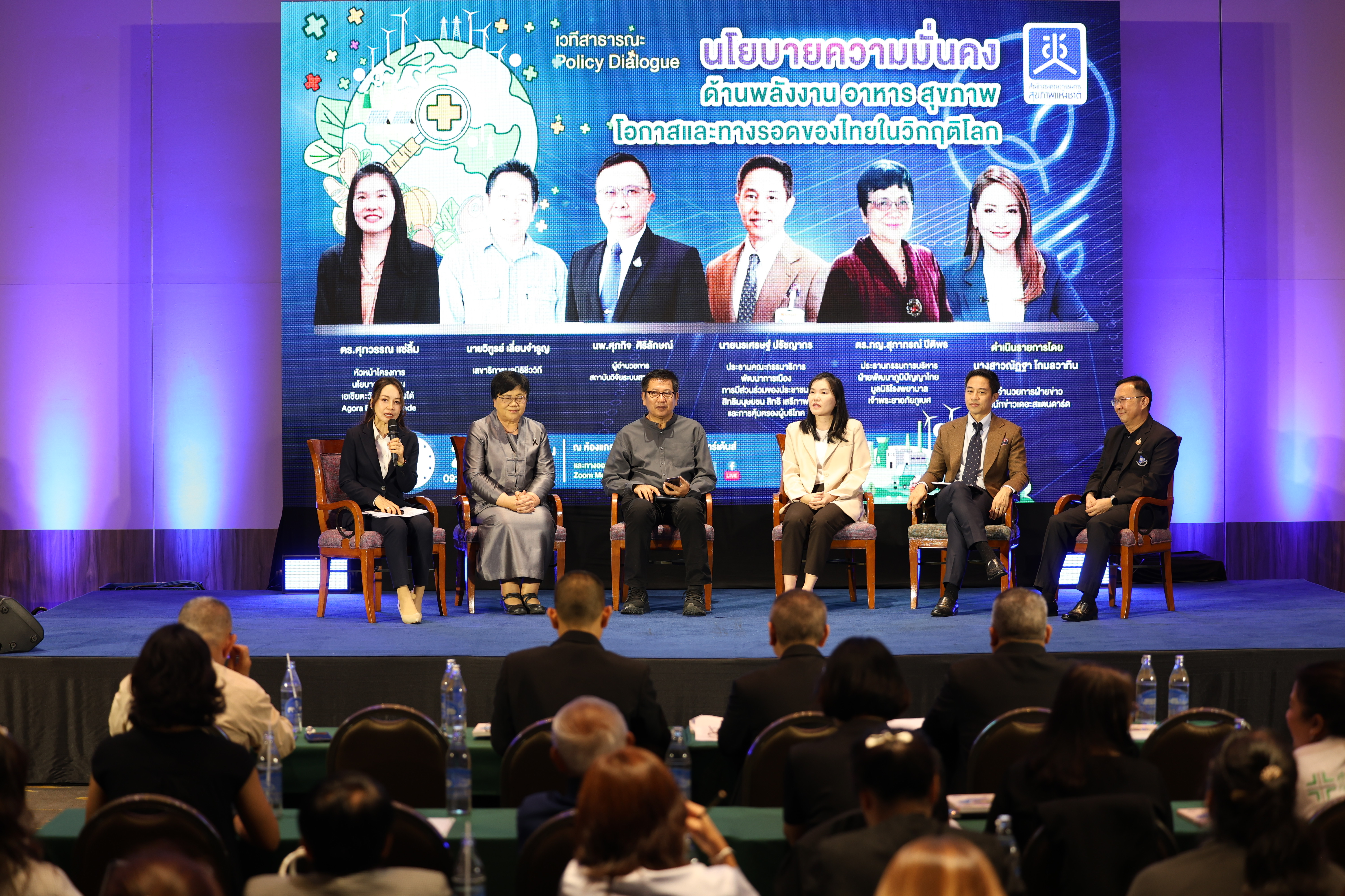 สำหรับเวที Policy Dialogue ในครั้งนี้ ยังได้มีเวทีเสวนาเพื่อแลกเปลี่ยนถึงสถานการณ์ความไม่มั่นคงทางพลังงาน อาหาร สุขภาพ โดยมีวิทยากรประกอบด้วย ดร.ศุภวรรณ แซ่ลิ้ม หัวหน้าโครงการนโยบายพลังงานเอเชียตะวันออกเฉียงใต้ Agora Energiewende, นายวิฑูรย์ เลี่ยนจำรูญ เลขาธิการมูลนิธิชีววิถี, ดร.ภญ.สุภาภรณ์ ปิติพร ประธานกรรมการบริหารฝ่ายพัฒนาภูมิปัญญาไทย มูลนิธิโรงพยาบาลเจ้าพระยาอภัยภูเบศ และ นายนรเศรษฐ์ ปรัชญากร ประธานคณะกรรมาธิการพัฒนาการเมือง การมีส่วนร่วมของประชาชน สิทธิมนุษยชน สิทธิ เสรีภาพ และการคุ้มครองผู้บริโภค