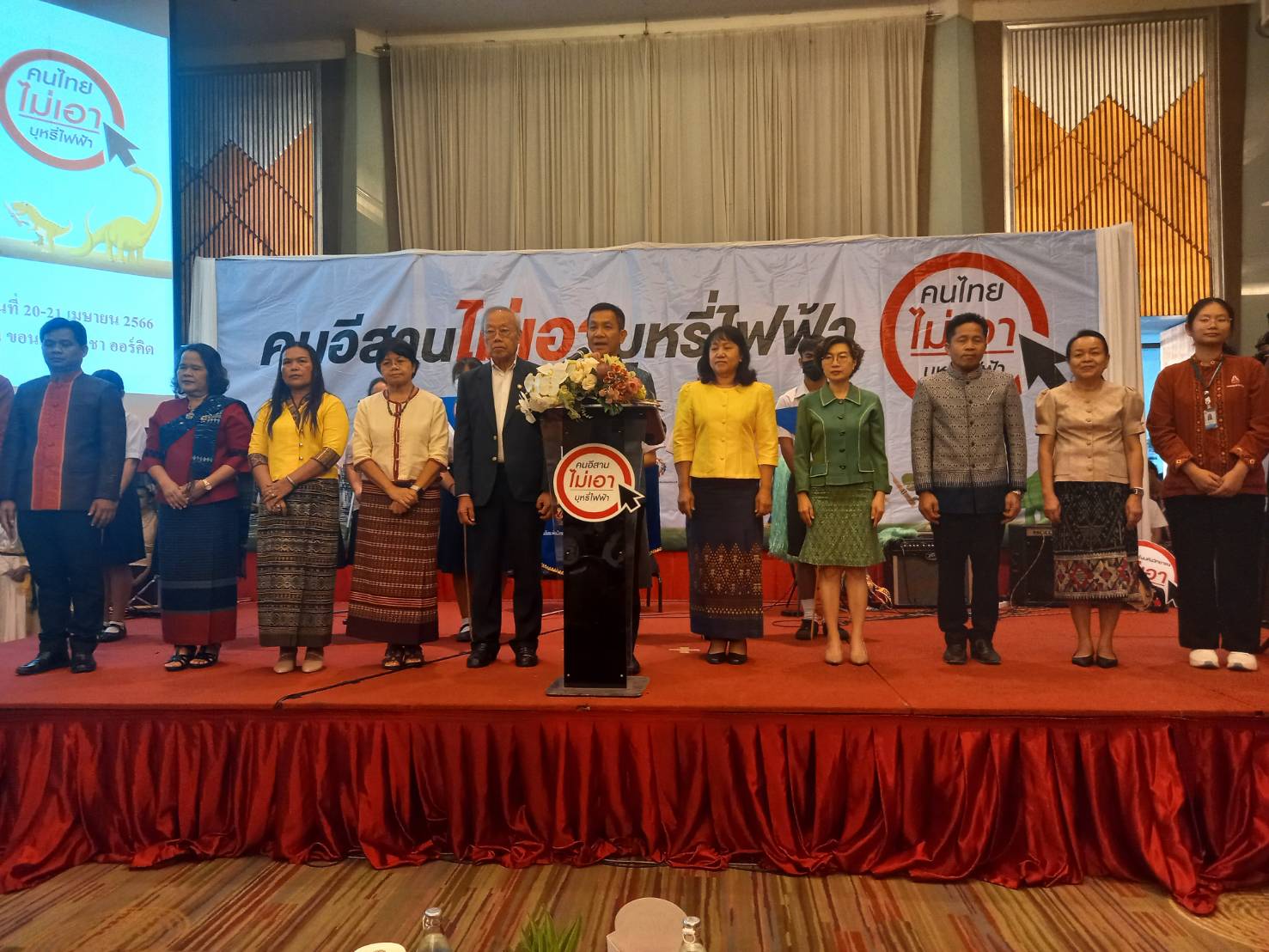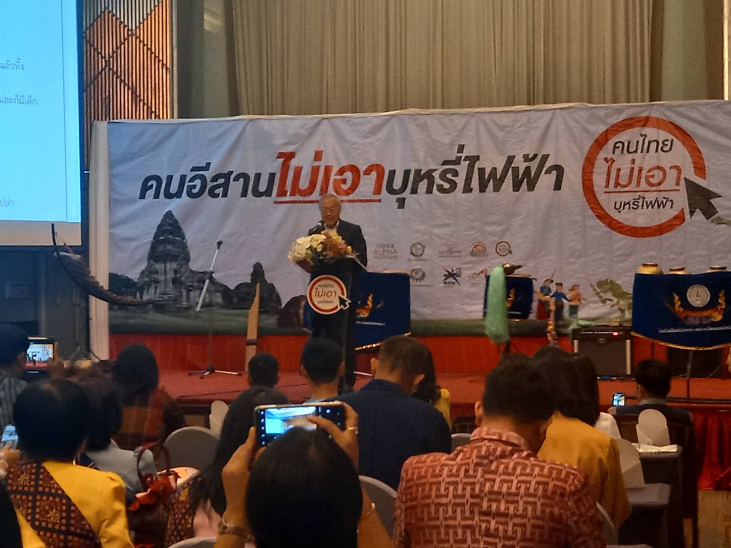 นายพันธ์เทพ เสาโกศล รองผู้ว่าราชการจังหวัดขอนแก่น กล่าวว่า รู้สึกยินดีและเป็นเกียรติอย่างยิ่งที่ได้เป็นประธานในการประกาศเจตนารมณ์ "คนอีสานไม่เอาบุหรี่ไฟฟ้า" ครั้งนี้ การระดมทุกภาคส่วนของภาคีเครือข่ายควบคุมยาสูบ 20 จังหวัดภาคอีสาน ให้มาร่วมกันรณรงค์ป้องกันการเข้าถึงบุหรี่ไฟฟ้ากับกลุ่มเด็กและเยาวชนถือเป็นวาระแห่งชาติ ที่จะต้องดำเนินการอย่างเร่งด่วน เนื่องจากปัญหาการแพร่ระบาดของบุหรี่ไฟฟ้าขยายวงกว้างไปอย่างรวดเร็ว โดยเฉพาะอย่างยิ่งกับกลุ่มเด็กและเยาวชน โดยคำประกาศเจตนารมณ์ "คนอีสานไม่เอาบุหรี่ไฟฟ้า" มีแนวทางดังนี้ (1.)พวกเราจะร่วมมือกันรณรงค์ป้องกันประชาชนภาคอีสานทุกคน โดยเฉพาะเด็กและเยาวชน ให้ปลอดพ้นจากการเสพติดบุหรี่ไฟฟ้าทุกรูปแบบ (2.)พวกเราจะร่วมกันสร้างพื้นที่ปลอดภัย โดยเฉพาะในโรงเรียน และสถานศึกษาทุกระดับ เพื่อป้องกันการเข้าถึงบุหรี่ไฟฟ้าและผลิตภัณฑ์ยาสูบทุกชนิดของเด็กและเยาวชนภาคอีสาน โดยการบังคับใช้กฎหมายการห้ามจำหน่ายบุหรี่ไฟฟ้าอย่างเคร่งครัด (3.)พวกเราจะร่วมกันสื่อสารข้อมูล เพื่อสร้างความเข้าใจที่ถูกต้องให้กับประชาชนภาคอีสาน ได้รับรู้ถึงอันตรายของการเสพติดบุหรี่ไฟฟ้า และรู้เท่าทันกลยุทธ์ของอุตสาหกรรมยาสูบ (4.)พวกเราจะร่วมกันสร้างกลไกขับเคลื่อนงานของทุกภาคส่วน ทั้งภาครัฐ ภาคเอกชน และภาคประชาสังคมให้เกิดการเชื่อมประสานการทำงานในเรื่องนี้อย่างเป็นรูปธรรมต่อเนื่อง (5.)พวกเราจะดำเนินการป้องกันการเข้าถึงบุหรี่ไฟฟ้าให้เป็นวาระแห่งชาติ และประกาศเจตจำนงที่ชัดเจนในการสนับสนุนให้รัฐบาลคงนโยบาย และมาตรการในการควบคุมบุหรี่ไฟฟ้าให้เป็นไปตามที่กฎหมายกำหนดไว้