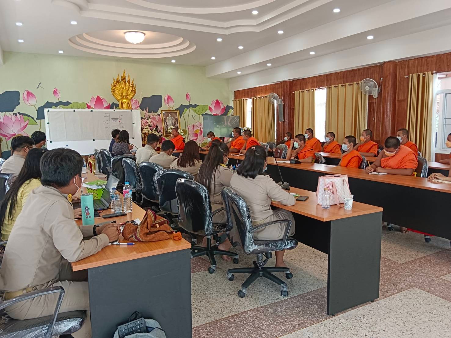 พอรู้ว่าธรรมนูญเป็นแม่บทสำคัญในการขับเคลื่อนงาน ทุกคนเข้าใจ จึงเกิดการเปลี่ยนแปลงมีการพัฒนาสุขภาวะของสามเณร ต่อมาจึงแต่งตั้งคณะกรรมการที่มาจากทุกภาคส่วนร่วมกันขับเคลื่อน มีการทำโครงการโดยของงบจาก ‘กองทุนตำบล’ มาดูแลส่งเสริมสุขภาพและป้องกันโรคให้กับพระภิกษุสามเณร