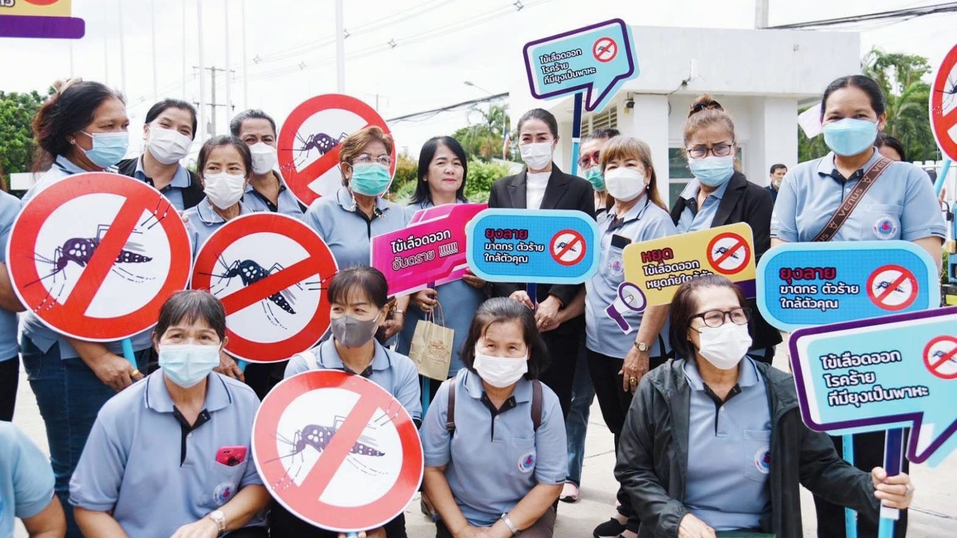 สำหรับภาคีเครือข่ายทั้ง กรมควบคุมโรค กรมสนับสนุนบริการสุขภาพ ได้เข้าไปสานพลังกับหน่วยงานในพื้นที่ ทั้งกรมส่งเสริมการปกครองส่วนท้องถิ่น (สถ.) องค์การบริหารส่วนจังหวัด (อบจ.) ปทุมธานี และภาควิชาการอย่าง วิทยาลัยอาชีวศึกษาปทุมธานี ร่วมกันทำกิจกรรมรณรงค์แก้ปัญหา “บ้าน วัด โรงเรียน พร้อมใจ หยุดภัยไข้เลือดออก”