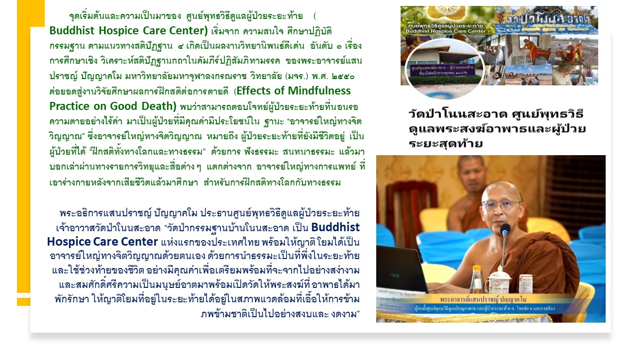 “การขับเคลื่อนงานดูแลสุขภาพ ระยะท้าย โดยองค์กรพระพุทธศาสนา และภาคียุทธศาสตร์ ”